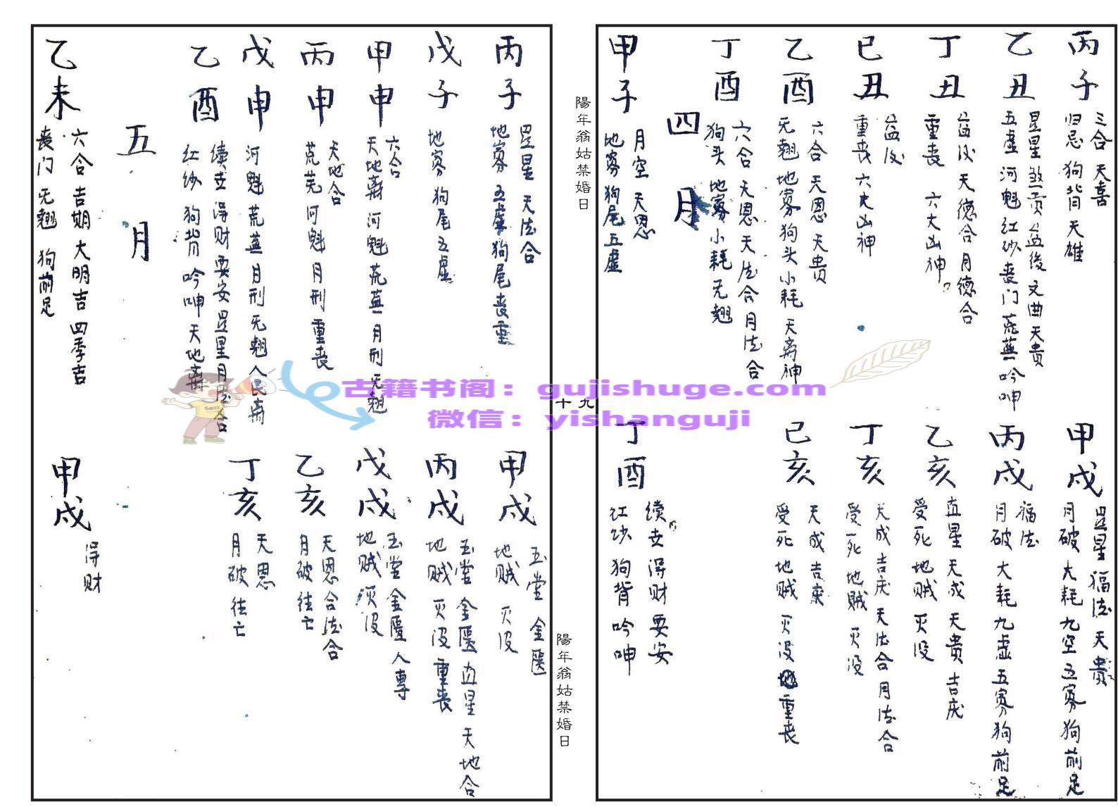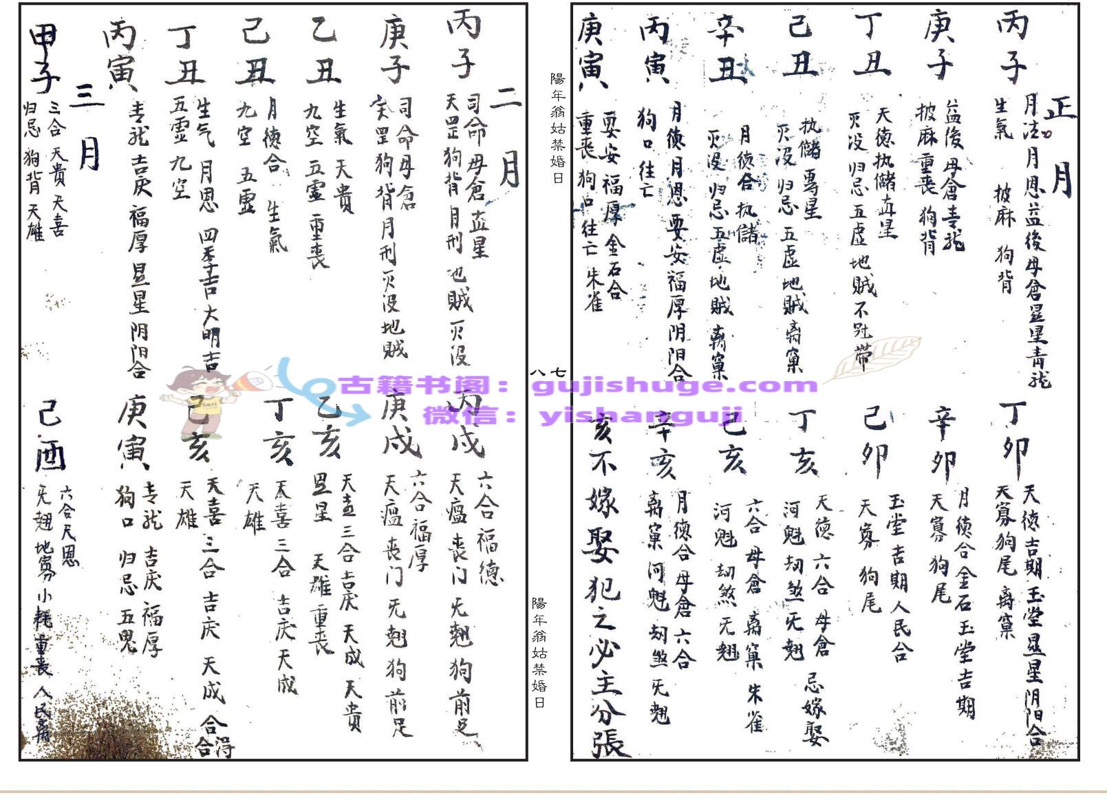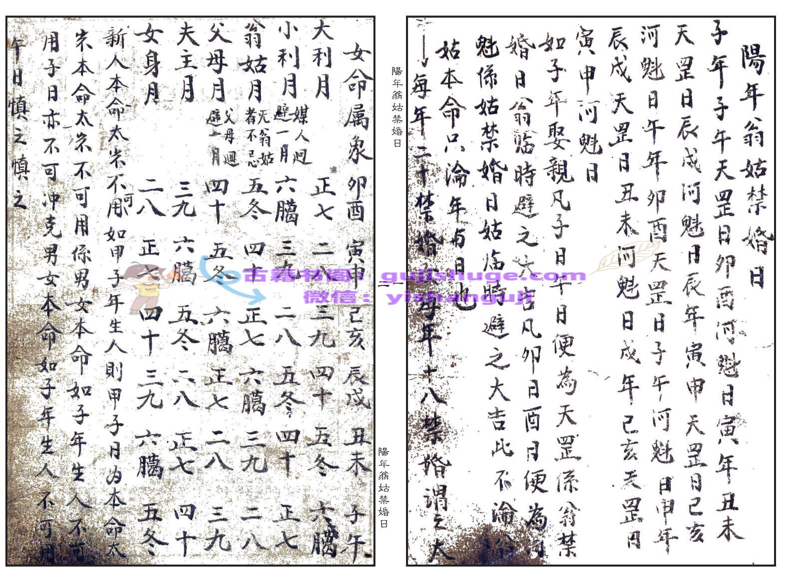 择日择吉古籍《阳年翁姑禁婚日》(婚元捷要)