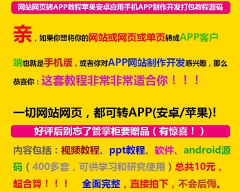 网站网页转手机APP教程苹果安卓应用制作开发打包教程源码