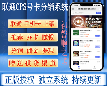 联通CPS号卡分销系统专业版丨电信移动手机SIM卡佣金商城/源码正版授权/赠供货渠道!